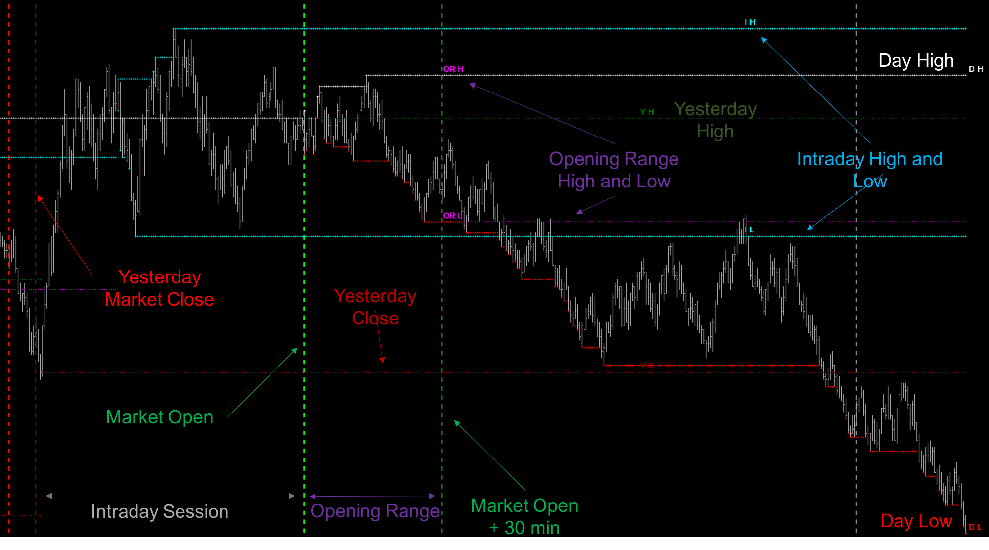 The XBP Market Key Levels indicator plots automatically the following levels: