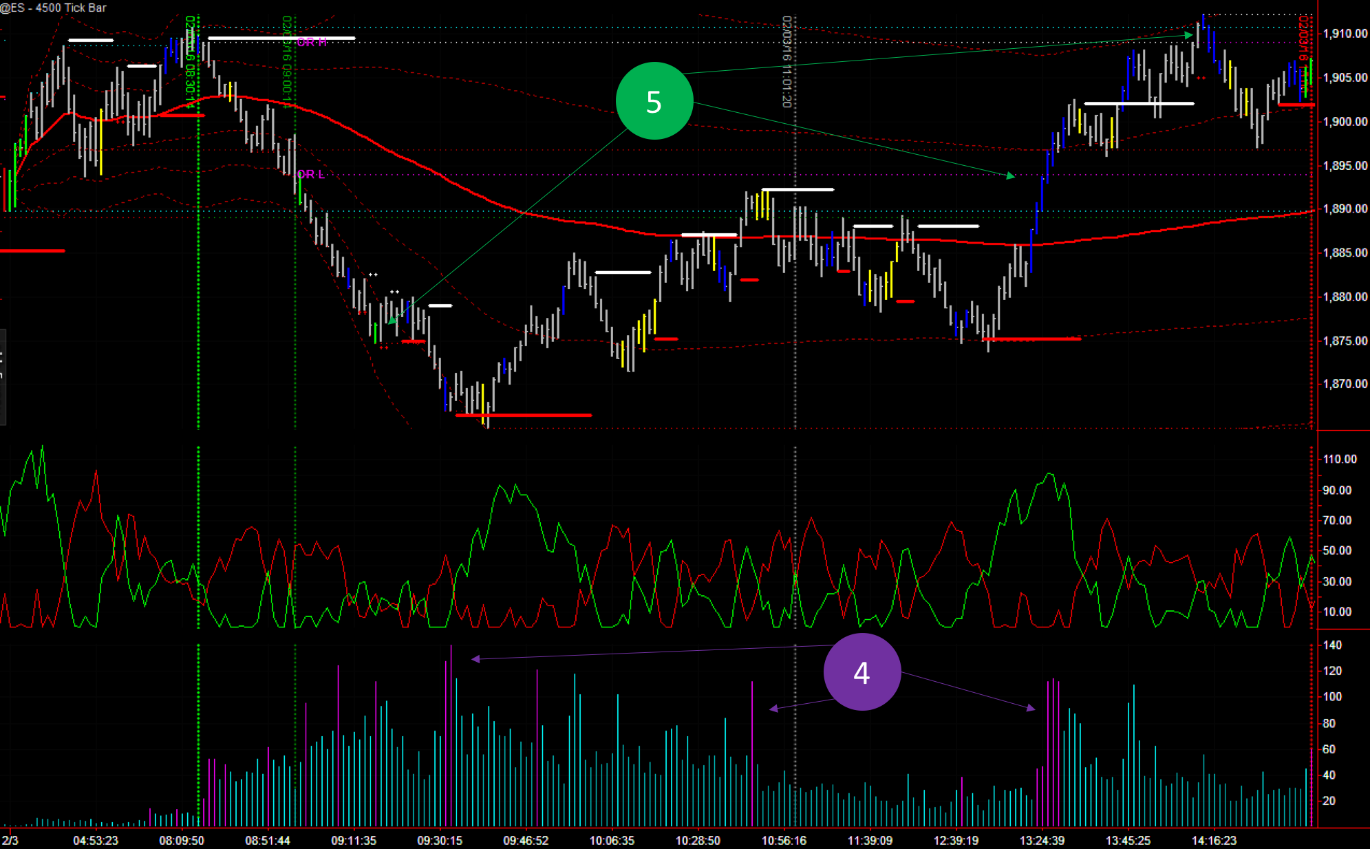 5) XBP Market Players: Green bars in 4,500 ticks charts are very significant. Always remember that. Today we had a tinny green bar, but which such a weight. The bar appeared around the 1875 level, and that very same level kept being the major support of the day. Coincidence? Nope.