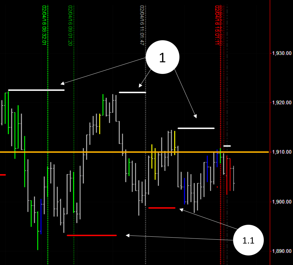 These bars help us to spot where the big money is entering/exiting the market, blue and green bars, and where the small players have been left alone in the wrong side of the market (yellow bars at the top/bottom of the market).