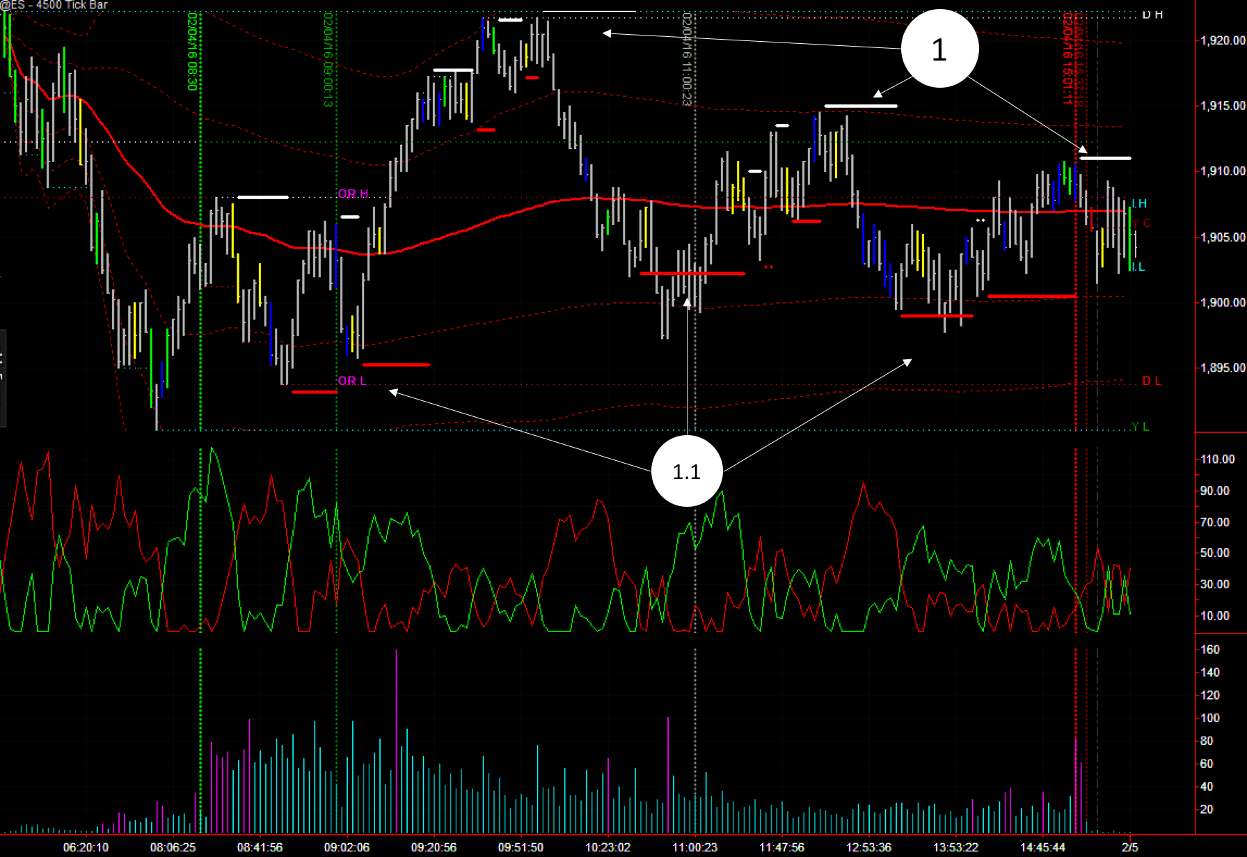1) XBP BB SR Levels: Normally we use 4,500 tick charts that have enough detail to place good trades and at the same time are a high enough time frame for us to see “the big picture”, but on days like today, where the market goes sideways, is not that clear. Then, the best way to get the big picture is to scale up to the weekly charts time frame of 13,500 ticks (4,500 x 3):