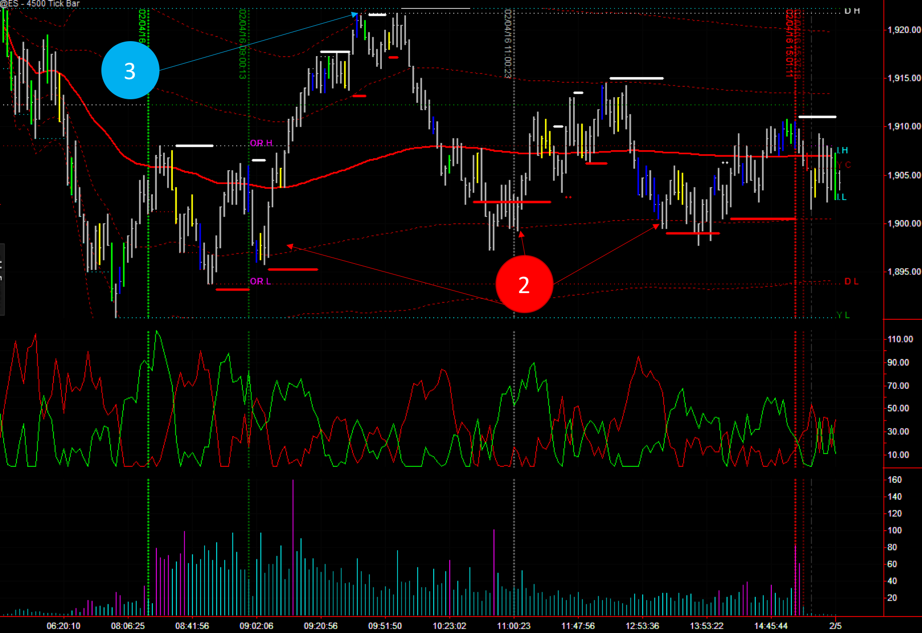2) XBP VWAP: Price danced around the main VWAP, which is typical of sideways days. Good signals when touching standard deviation levels, finding good supports and resistances during the day.
