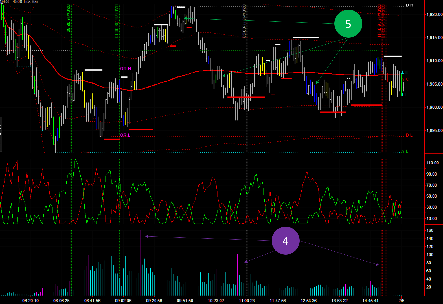 5) XBP Market Players: Check the green bars, right at the top around 9:45, shorting the market and later at 10:30-ish marking the bottom of the market. The cluster of big players’ blue bars at the same level as the 3rd green bar of the day could give us a clue of where the big players are entering and betting the market.