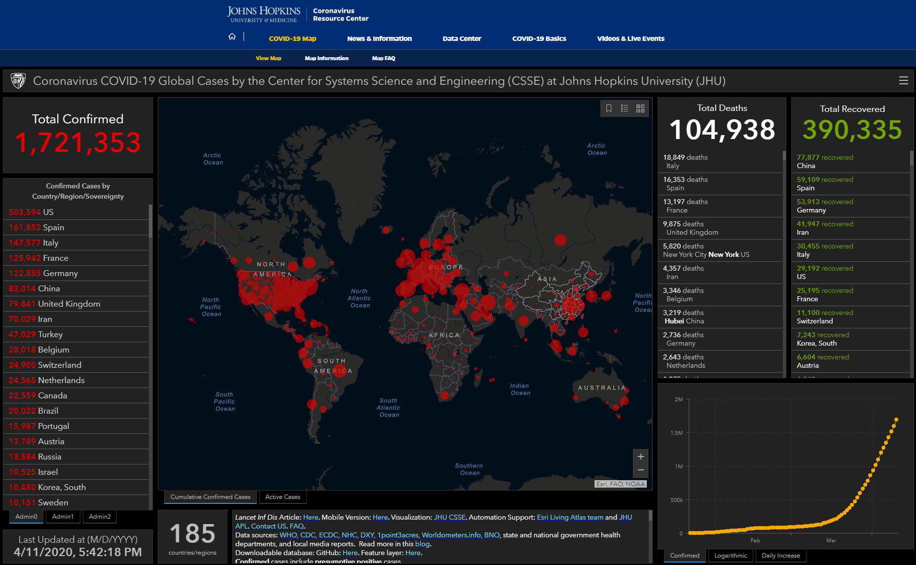 Note: On March 29th the total confirmed cases were 700k and the number of deaths 33k.